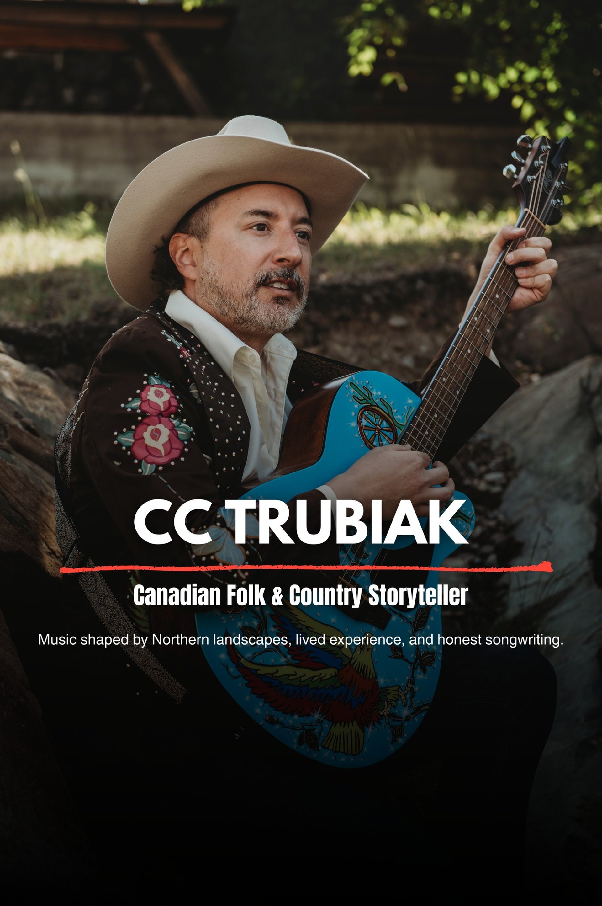 CC Trubiak is a self-taught Canadian singer-songwriter whose music blends folk, country, and acoustic sincerity, shaped by the vast landscapes and close-knit communities of Northern Manitoba. Originally beginning his songwriting and independent recording journey in Ottawa in 2010, Trubiak later returned to his home province, where he has spent more than a decade performing both as a solo artist and as a member of several long-standing regional bands.